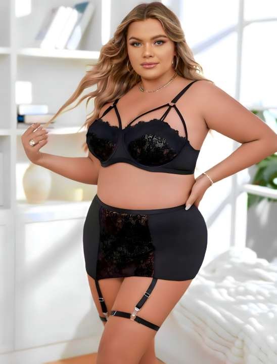 Complete garter belt lingerie set including matching garter belt, thigh-high stockings and coordinating panties. Adjustable straps for a perfect fit. Available in Büyük Beden.